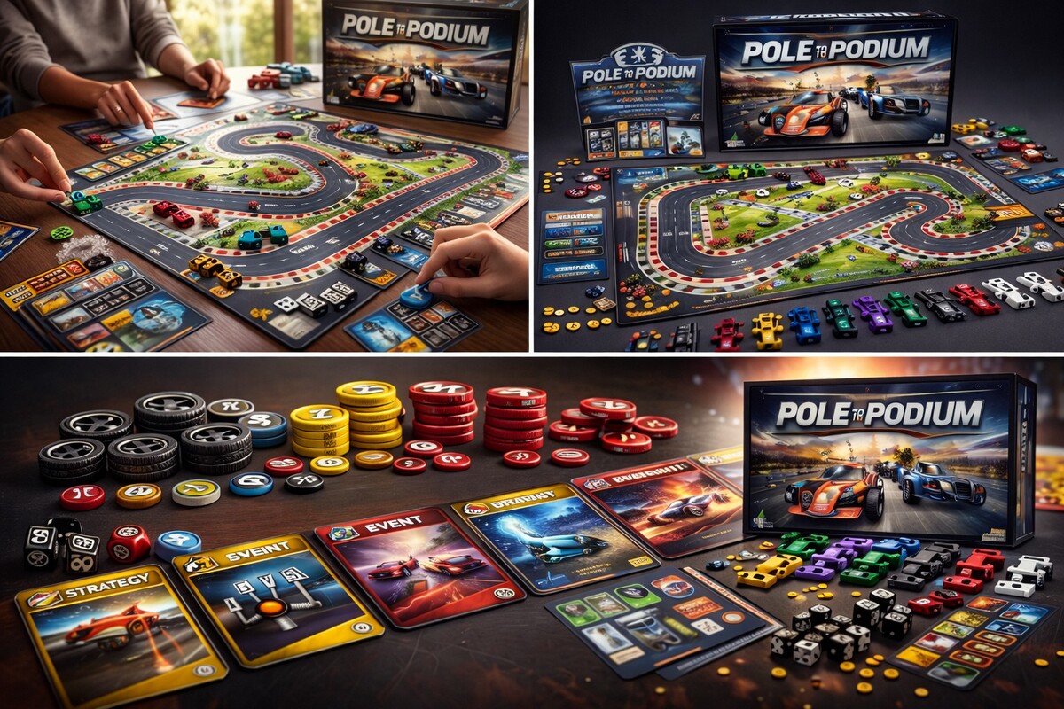 Pole to Podium™ is a strategy-driven board game that translates the intensity, decision-making, and progression of competitive motorsport into a structured, engaging tabletop experience.